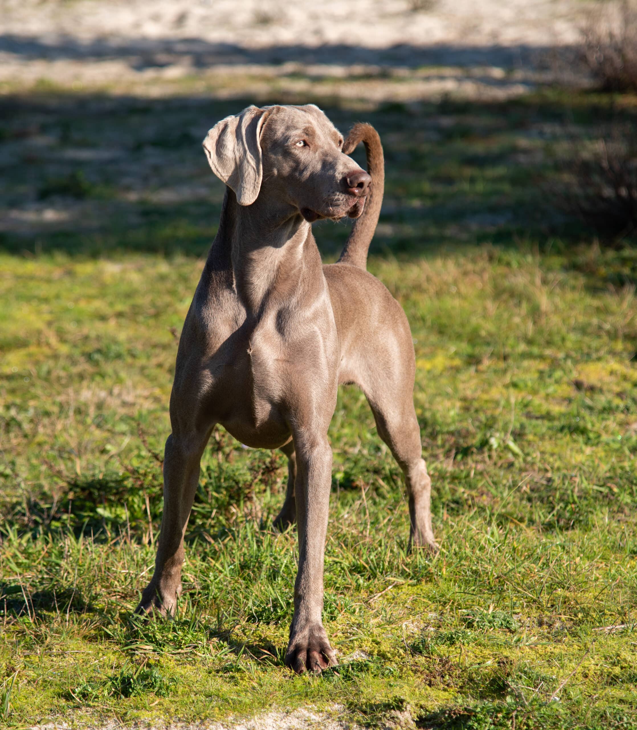 El Braco de Weimar es una raza elegante y atleta, distinguida por su manto gris plateado único y sus ojos ámbar o grises. Son perros versátiles, conocidos por su inteligencia, energía y gran apego familiar, excelentes perros de caza y compañeros leales. Nuestros ejemplares se crían con foco en el temperamento equilibrado, en la salud y el estándar racial.