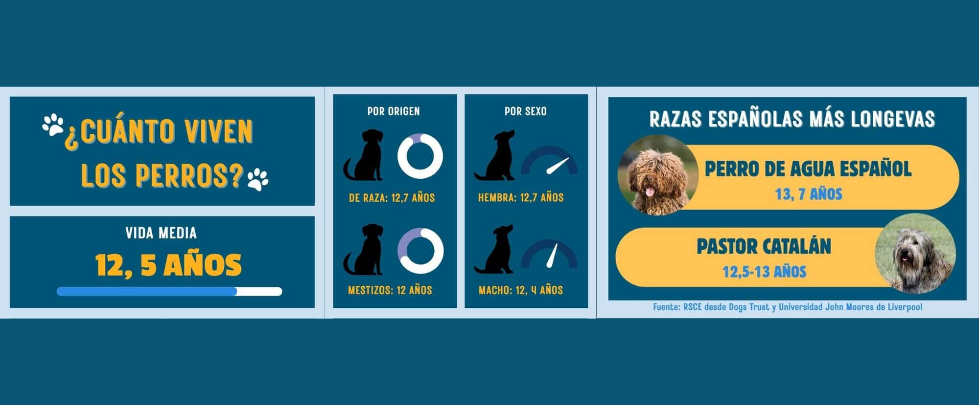 Igual que las personas, los perros viven cada vez más y mejor. Y su esperanza de vida varía según sean de raza o mestizos: los primeros alcanzan una media de 12,7 años, frente a los 12 de los cruzados. El estudio, realizado sobre más de medio millón de ejemplares de 155 razas y cruces, fija la longevidad media canina en 12,5 años, según la Real Sociedad Canina de España (RSCE), a partir de un trabajo de Dogs Trust en colaboración con la Universidad John Moores de Liverpool.